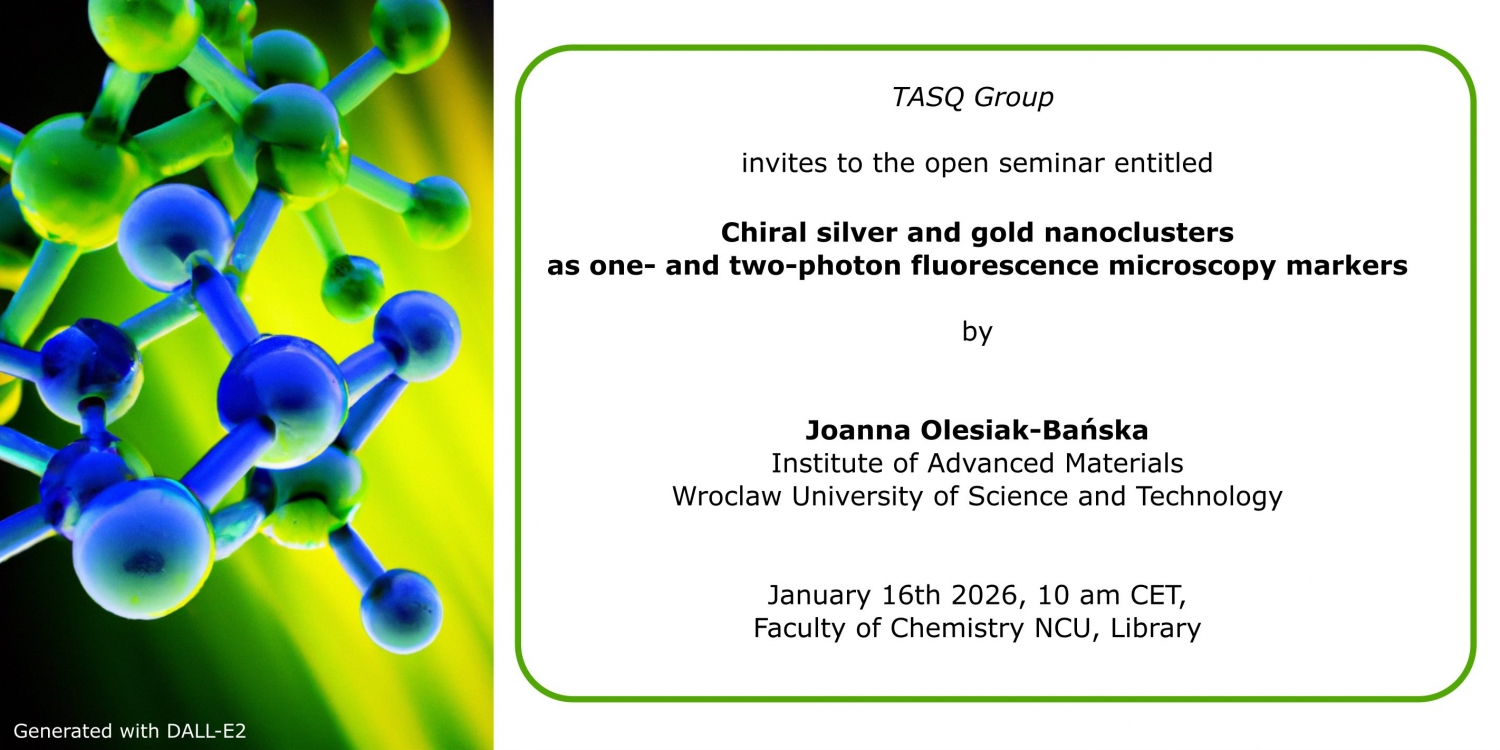 The first TASQ seminar of 2026 is coming soon! Our guest speaker will be Joanna Olesiak-Bańska from the Wrocław University of Science and Technology. She will talk about noble metal nanoparticles. Due to their unique optical properties and sizes comparable with biomolecules, these nanoparticles have the potential to improve present detection and sensing technologies, as well as inspire brand-new methods.